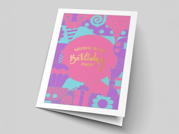 Luxurious birthday invitation card using advanced Foil and SPOT UV technology for a premium finish.